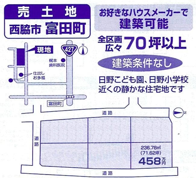 | 価格 | 458 万円 | 土地面積 | 236.78㎡ (71.62坪) |
